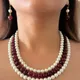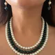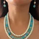 Take your style up a notch with this super elegant Triple Layered Pearl Mala! And oh, don't miss Emerald Green Onxy Agates. Wear it with your sarees for weddings, or just to stand out at casual get-togethers and parties. It's a game-changer!